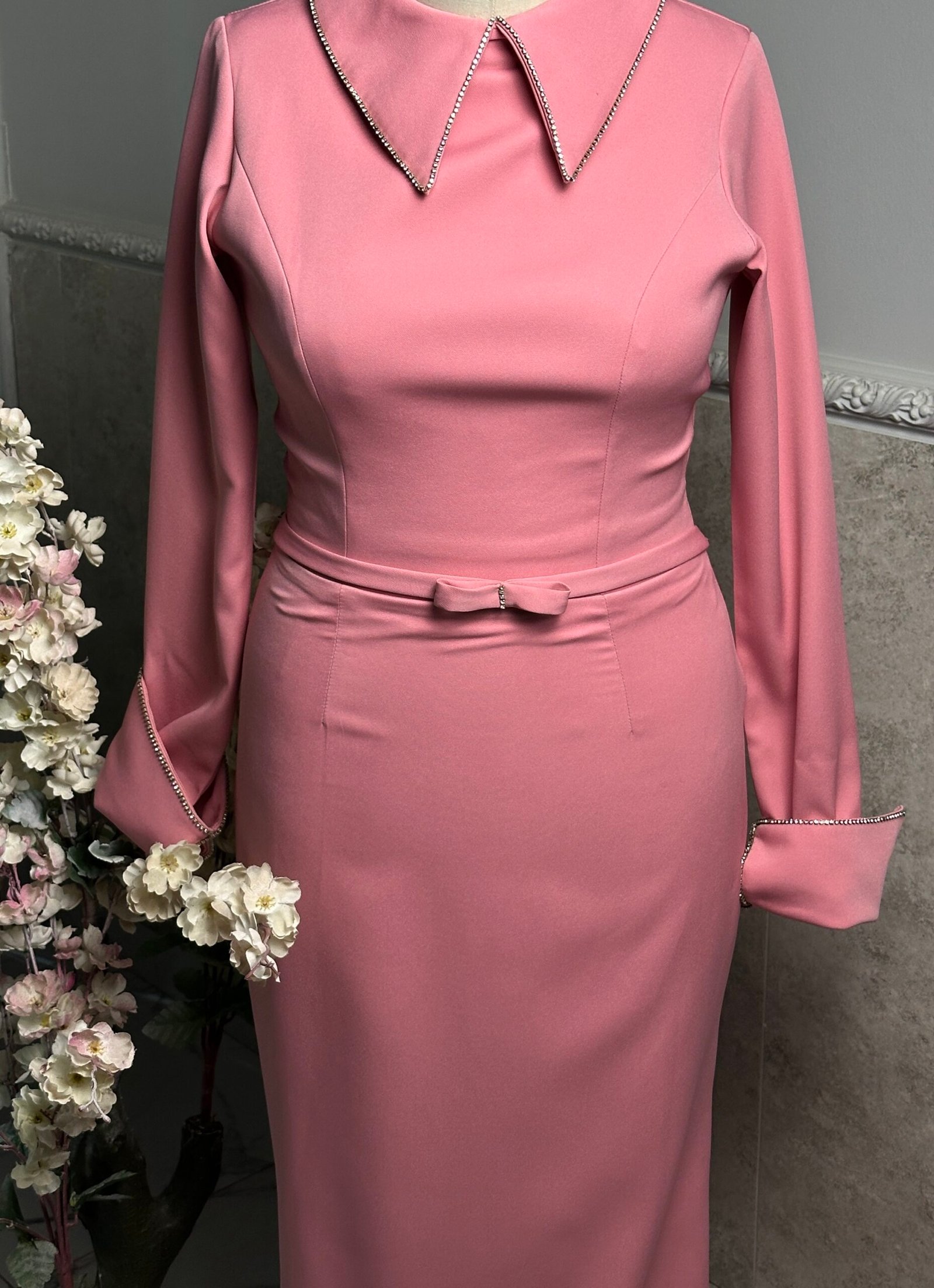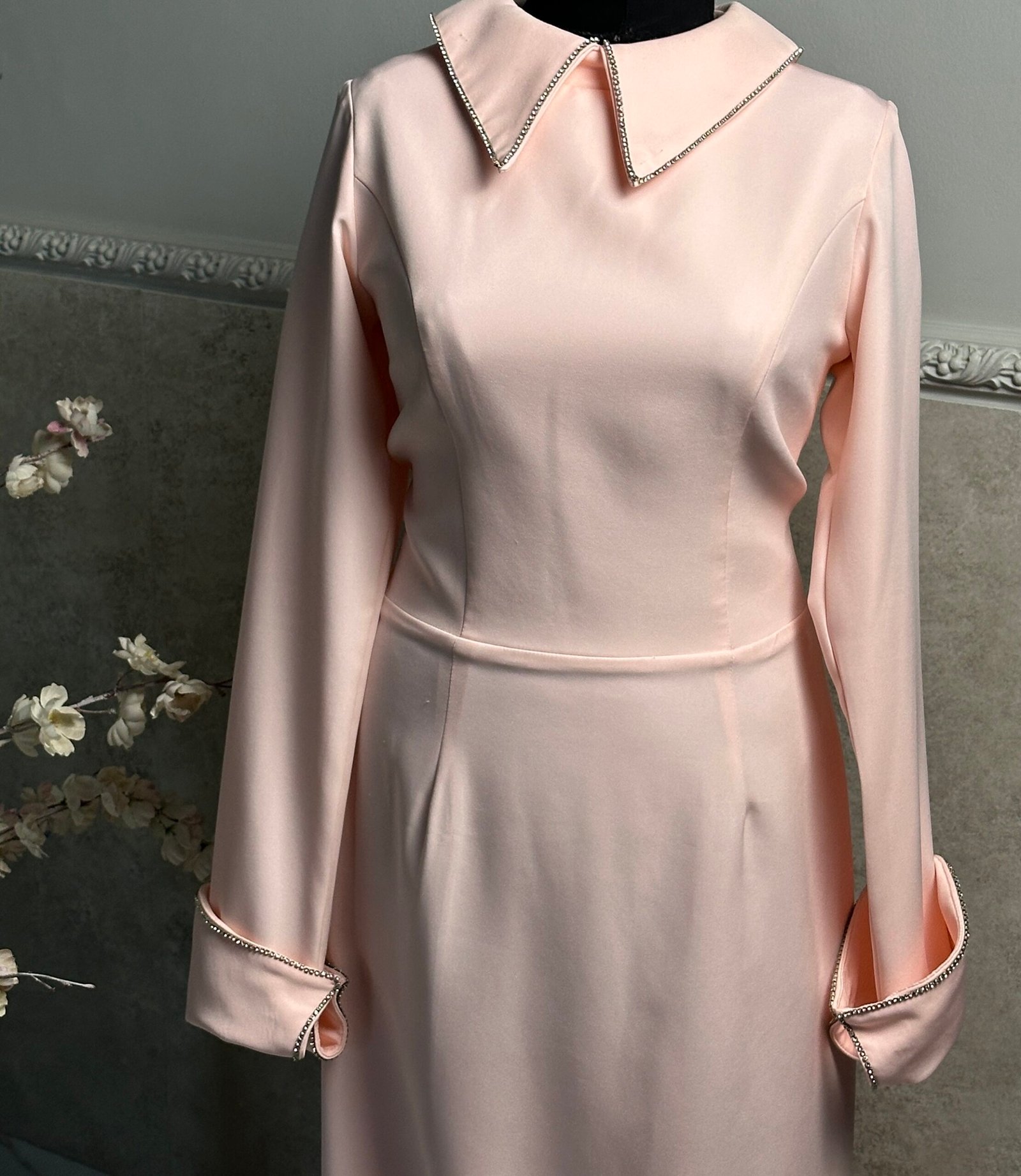 Simple with a rhinestone collar and rhinestone-designed inverted cuff sleeves