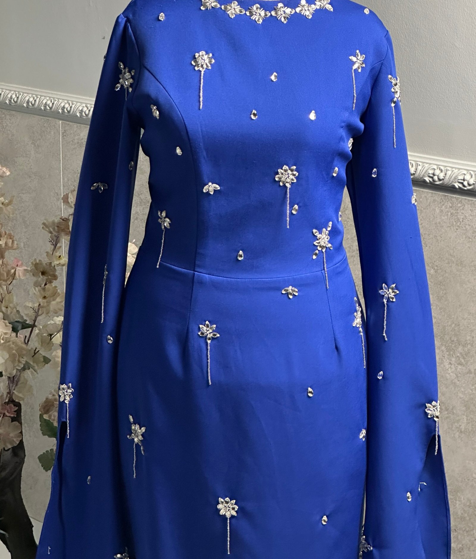 A handmade mermaid evening dress decorated with dazzling crystals, made to make you shine at every special moment