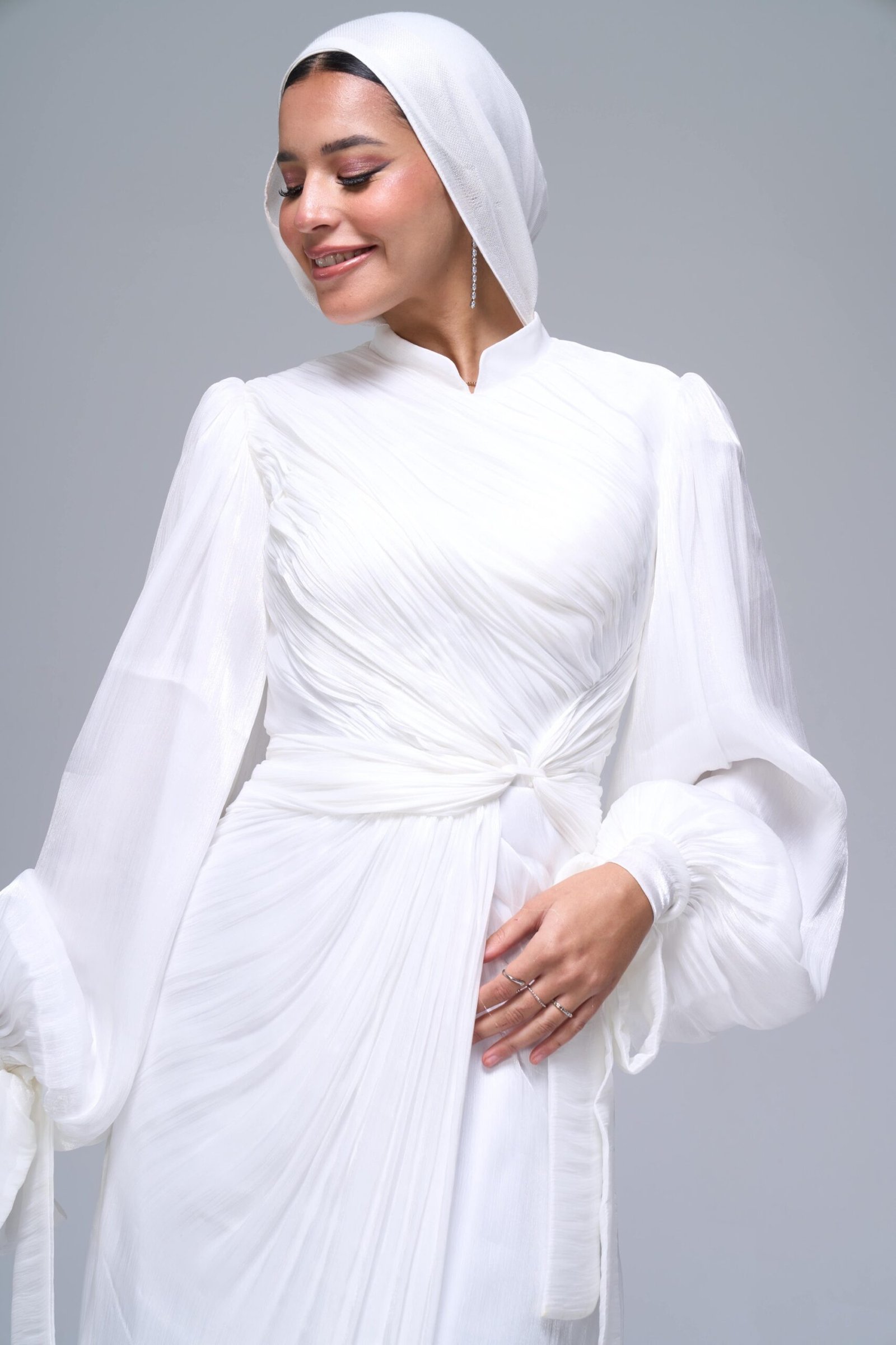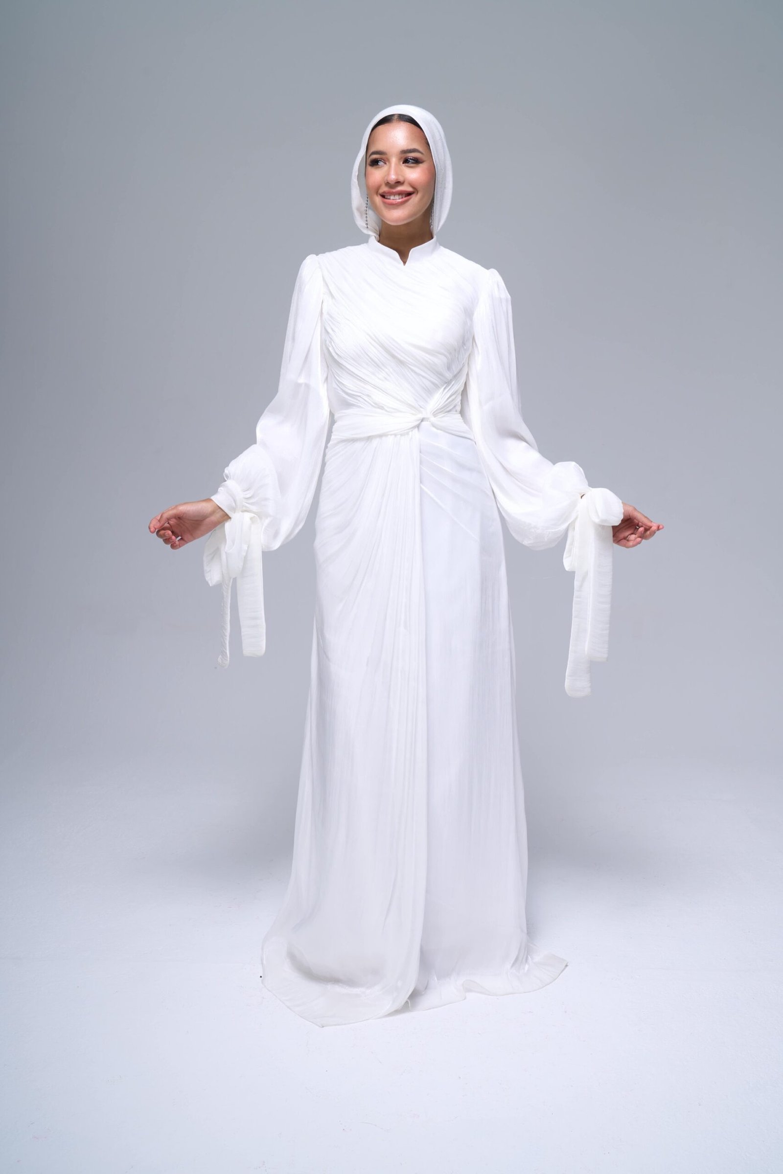 MODESTY offers a diverse range of standard sizes. To ensure the perfect fit for you, we include your measurements with every dress or suit you order. Most of our pieces are custom-tailored, allowing us to craft each item according to your exact size and preferences.