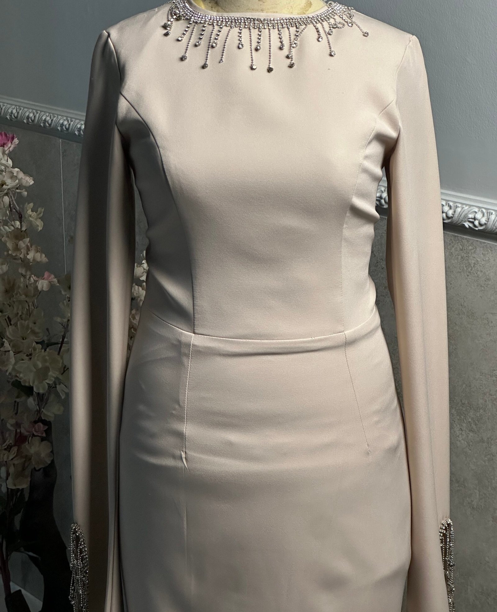 MODESTY offers a diverse range of standard sizes. To ensure the perfect fit for you, we include your measurements with every dress or suit you order. Most of our pieces are custom-tailored, allowing us to craft each item according to your exact size and preferences.