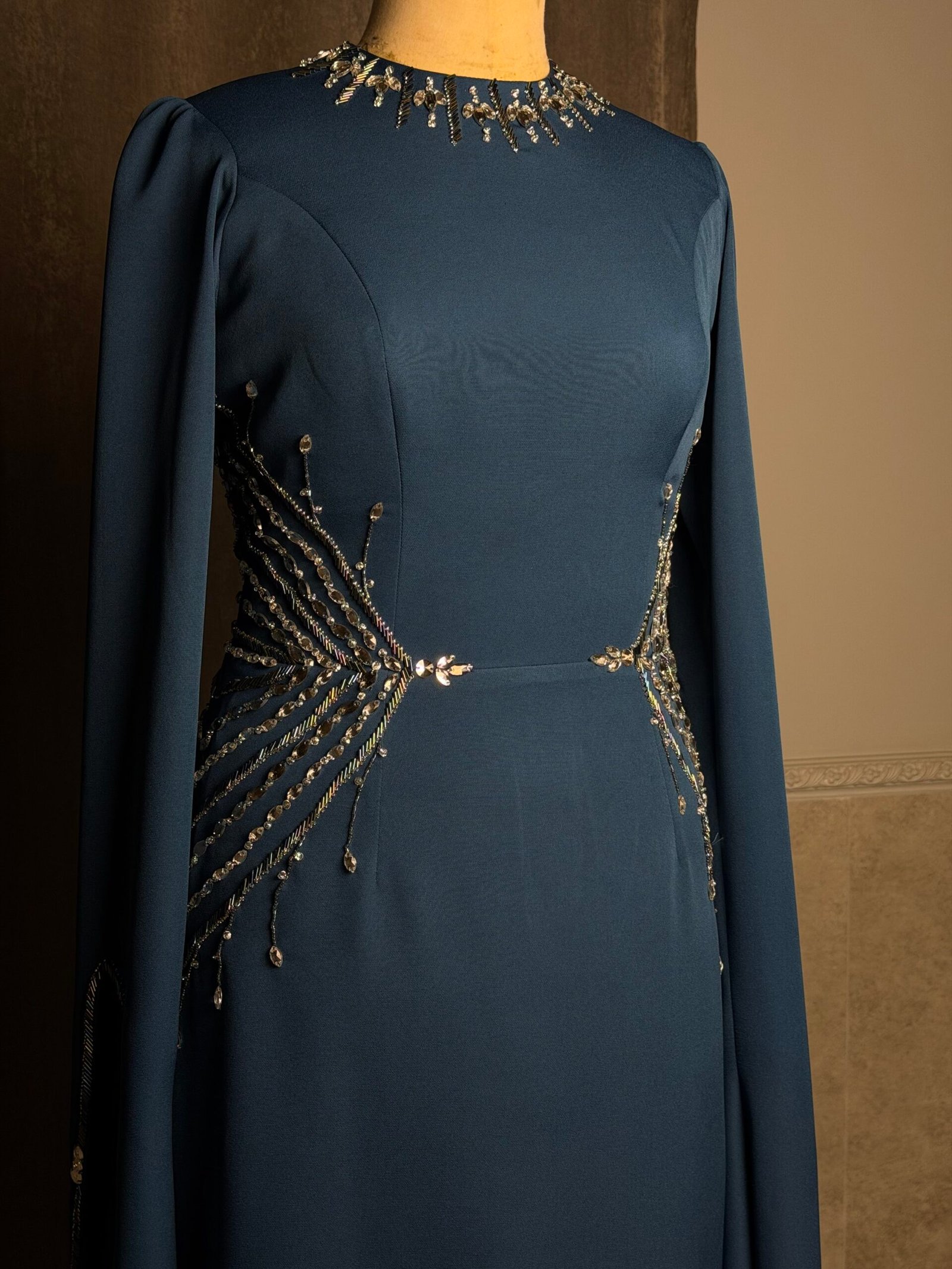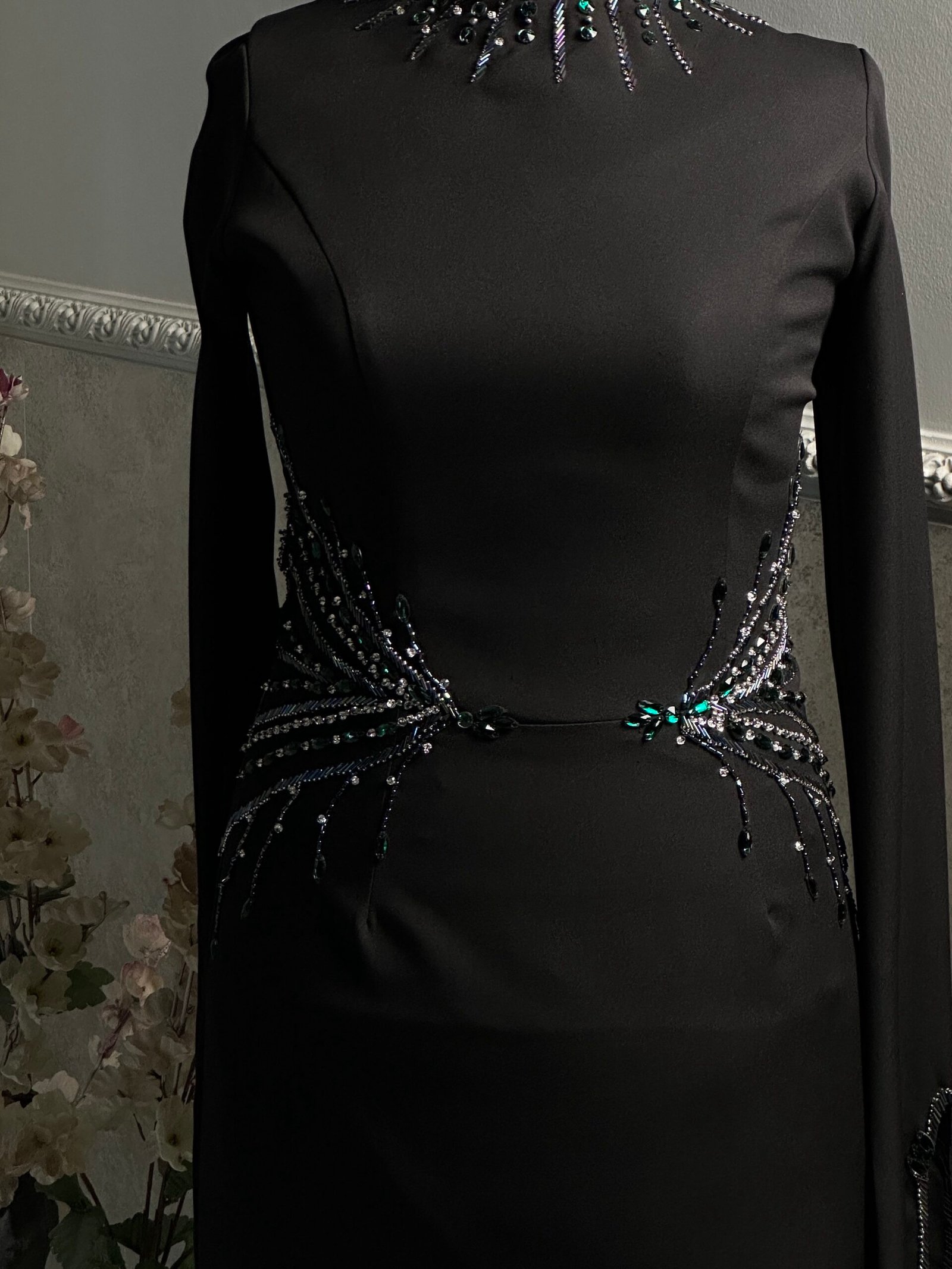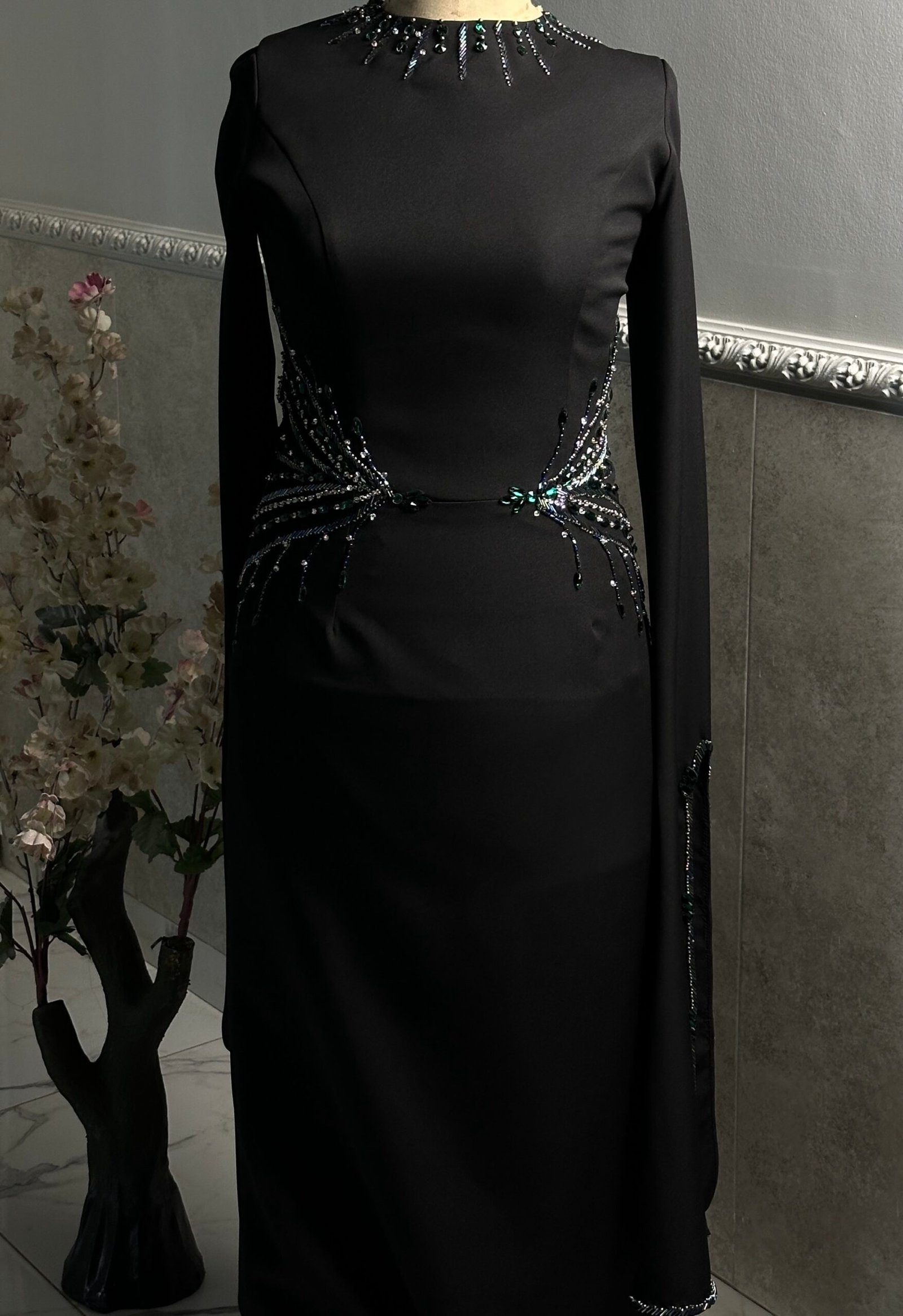 Elegant mermaid dress designed to highlight the feminine silhouette. Featuring delicate hand embroidery on the waist and neckline, adding a refined and sophisticated touch. Perfect for special occasions and unforgettable moments. ✨