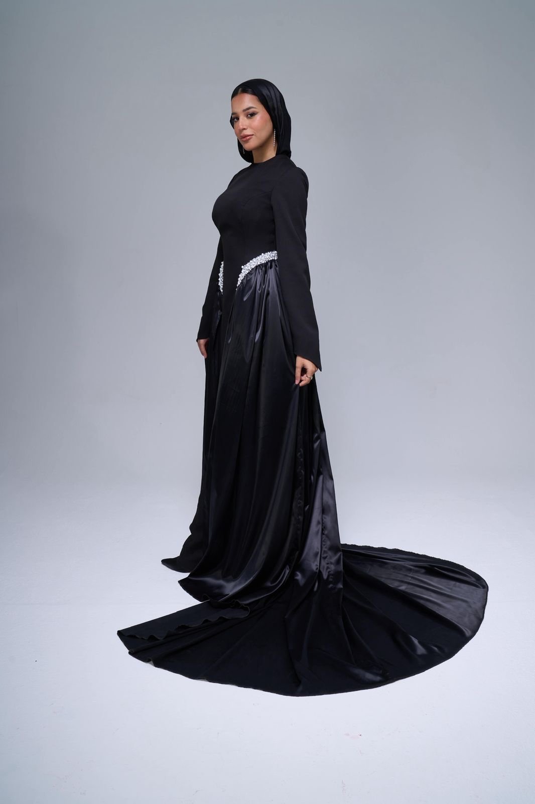 Fetish street with pearl and crystal embroidery on the sides and satin extensions