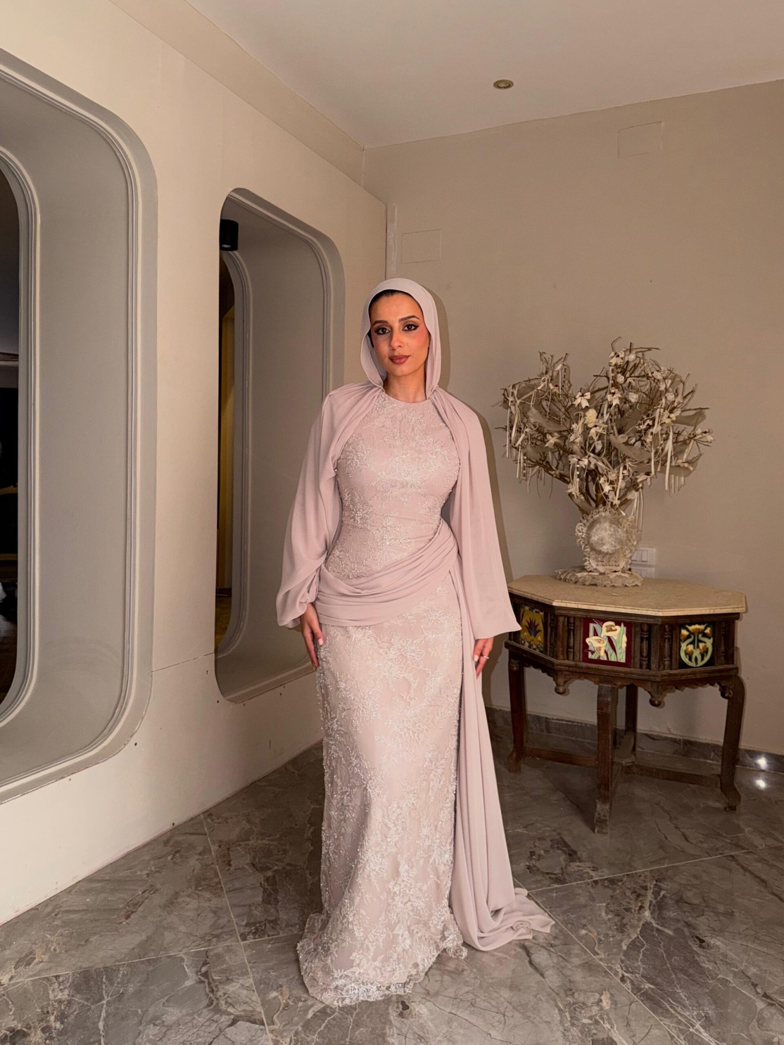 A delicate French lace dress, beautifully embroidered, featuring soft chiffon puffy sleeves that add a romantic touch. Designed with a flattering wrap silhouette that cinches the waist, creating an elegant and feminine shape ✨