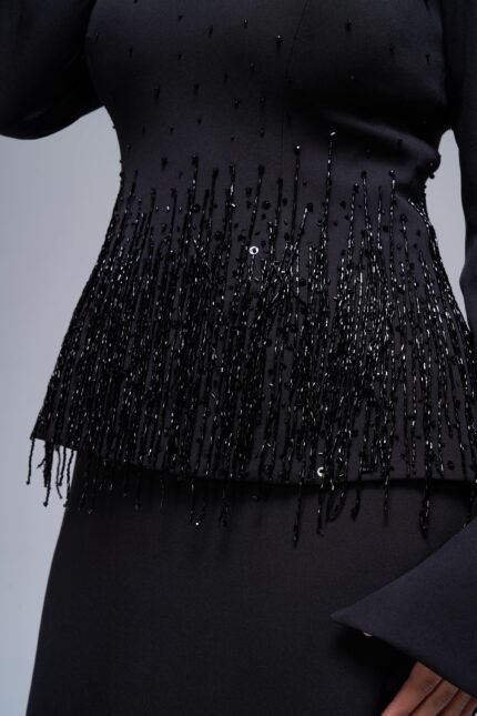 A stunning embroidered crop top suit, handcrafted with exquisite geometric detailing. A perfect blend of modern elegance and artistic craftsmanship ✨