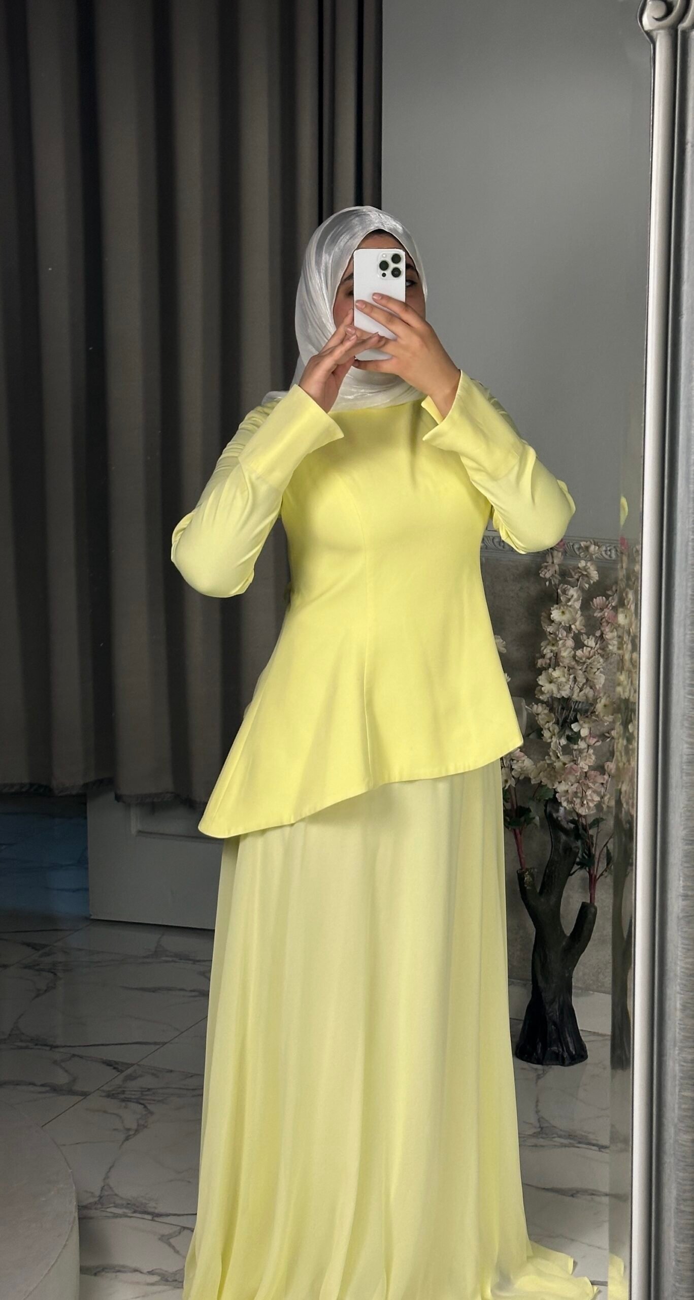 A feminine design with a corsage that defines the waist and a delicate back belt for a flattering fit. The flowing chiffon skirt adds soft, elegant movement for a dreamy and graceful look. ✨